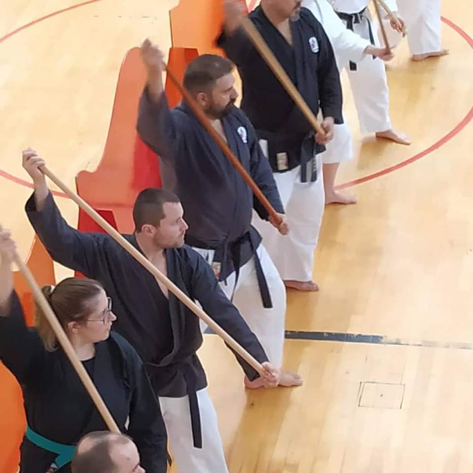 Clase de Jojutsu en el Seminario Nacional de GNKF en el pabellón polideportivo municipal de Figueres.