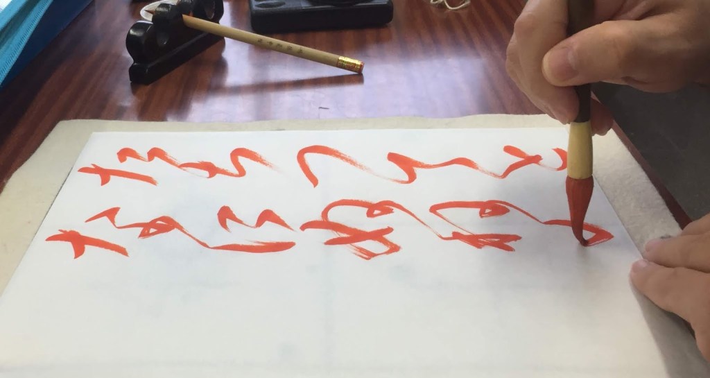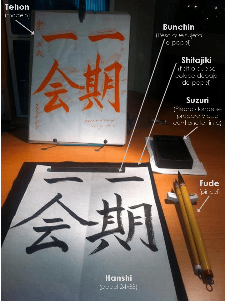 De las diferentes formas para referirse a esta práctica, quizás la más extendida sea la de shodô. No obstante, merece la pena aclarar que existen dos vertientes en la caligrafía que nos interesa distinguir, la técnica y la artística, y que poseen sus respectivos términos en japonés: shûji (shû – aprender y ji – letra) y shodô (sho – escribir y dô – camino). La diferencia radica en que lo primero sería cómo se aprende a escribir bien, es decir a tener buena letra, y lo segundo sería el hecho de intentar convertir la escritura en un vehículo de expresión, pasando a un segundo plano la corrección formal. Teniendo en cuenta que somos occidentales, mucho de lo que hacemos durante nuestras sesiones sería más bien shûji, y su propósito sería ir familiarizándose con elementos tan ajenos para nosotros como los que componen el idioma japonés.