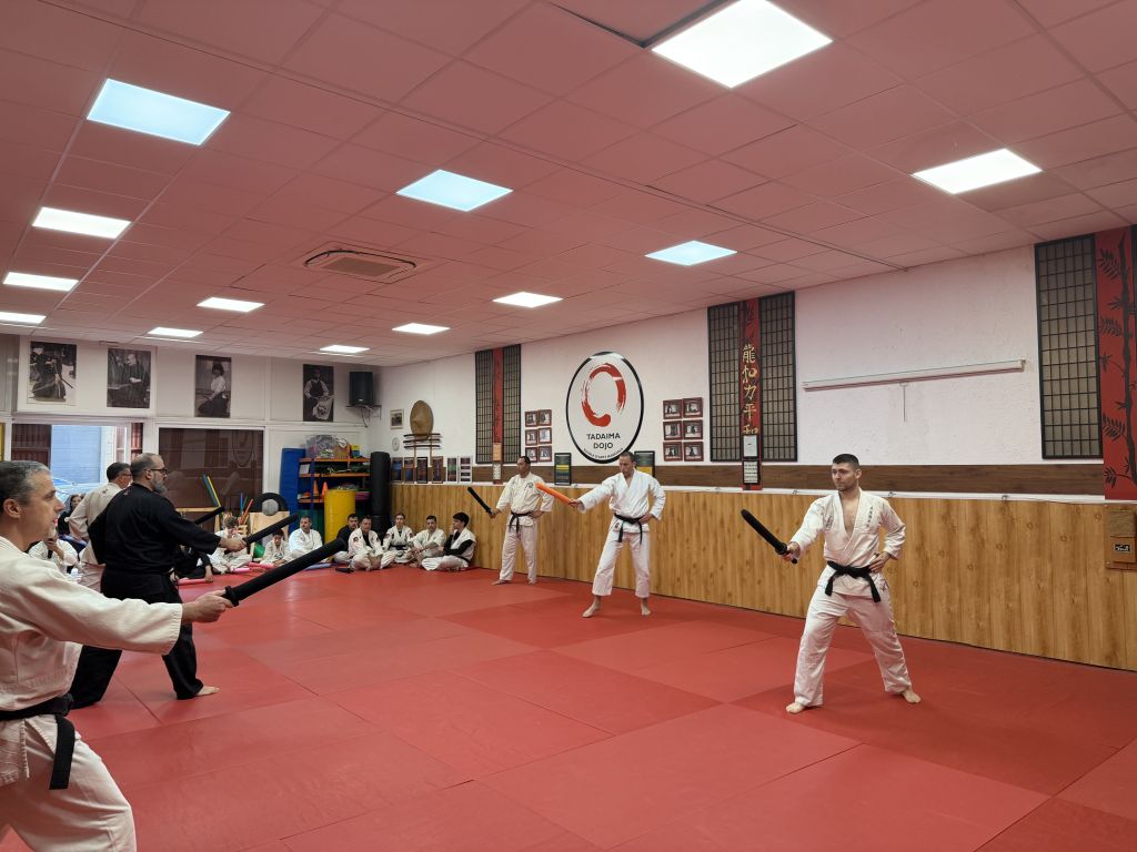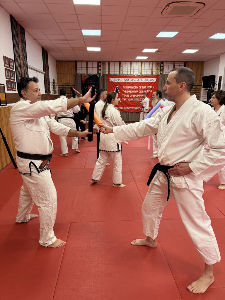 El curso estuvo liderado por el sensei Rafael Pulgarín, Director Deportivo de la Asociación Española de Chanbara, quien durante la mañana nos ofreció una formación completa y detallada, preparando a todos los asistentes para los exámenes que se llevarían a cabo al final de la jornada en el Tadaima Dojo. Su enfoque didáctico, junto con la claridad de sus explicaciones, permitió que los participantes comprendieran tanto la técnica como la filosofía de este arte marcial emergente.