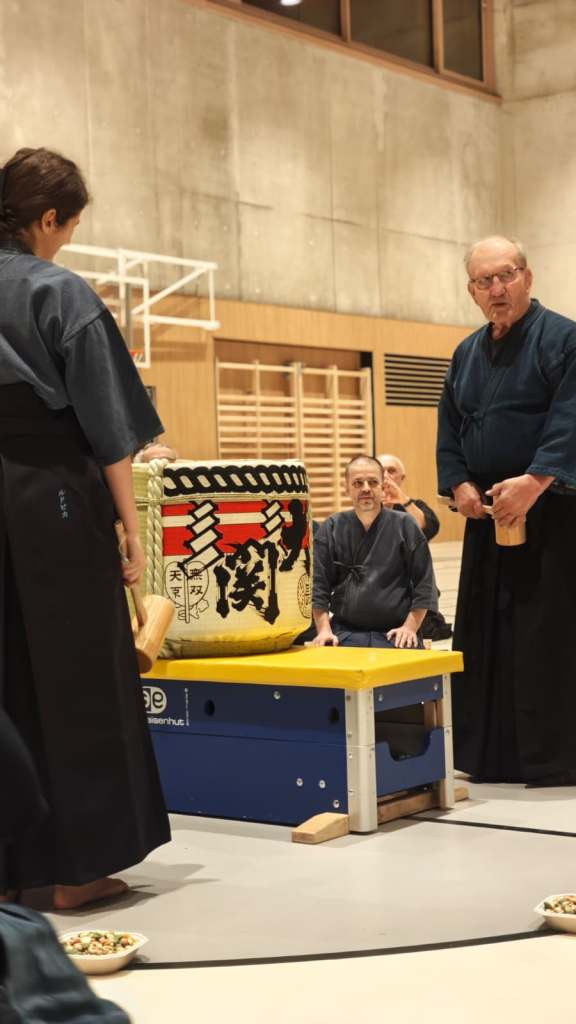 Tras la ceremonia, se dio paso al entrenamiento, siguiendo las directrices técnicas que ya se habían trabajado el día anterior. La jornada concluyó con el tradicional sake compartido, un momento distendido para celebrar juntos el inicio del nuevo año y reforzar los vínculos entre los profesores y practicantes de la federación.