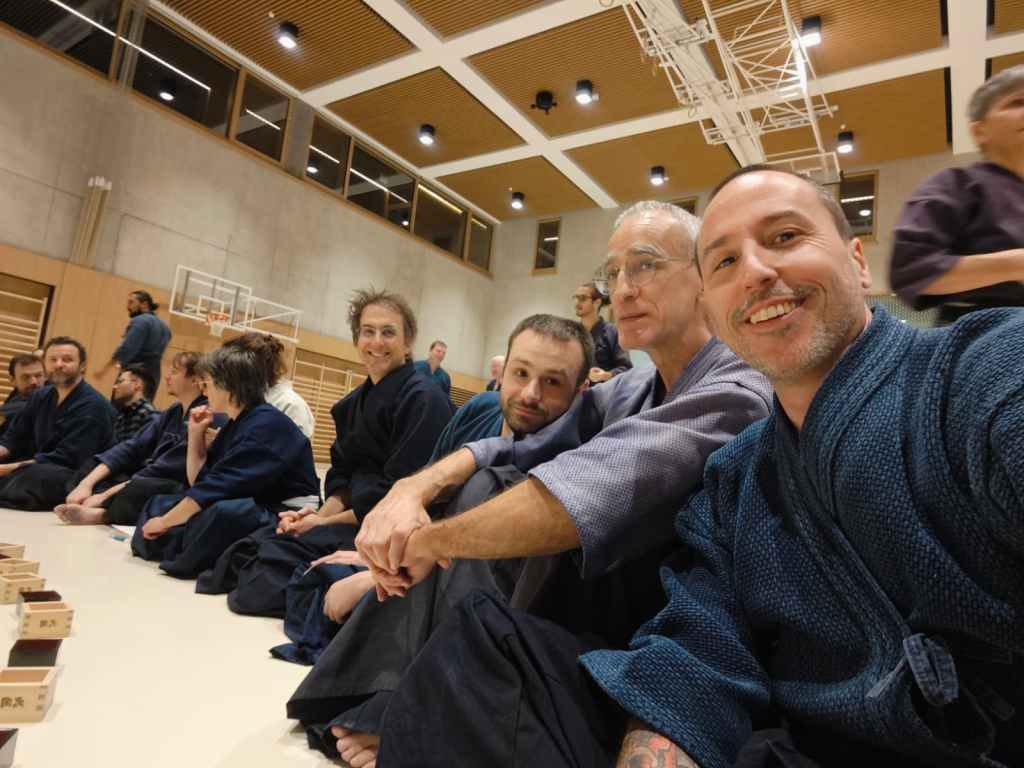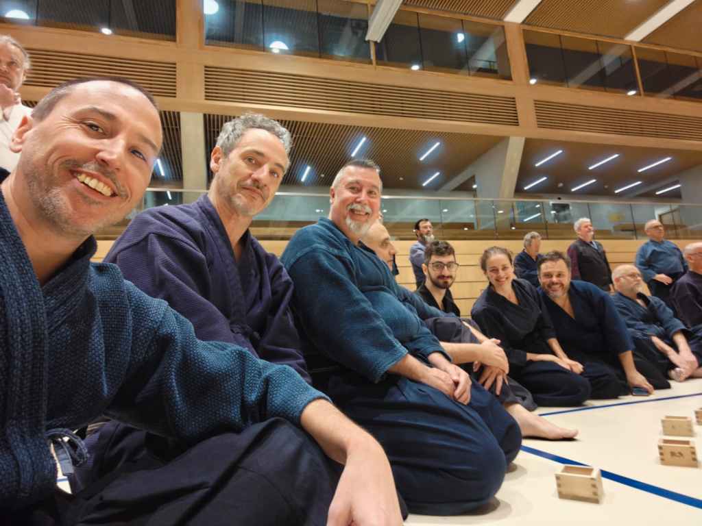 El sábado por la mañana, Pascal Krieger sensei se dirigió a los asistentes para dar inicio oficial al seminario. Tras sus palabras, se llevó a cabo la ceremonia de entrega de titulaciones, uno de los momentos más solemnes y emotivos del Kagami Biraki. Para el grupo español fue una ocasión muy especial: